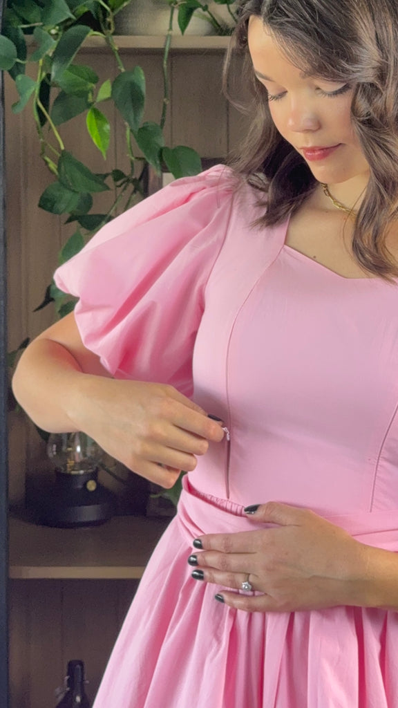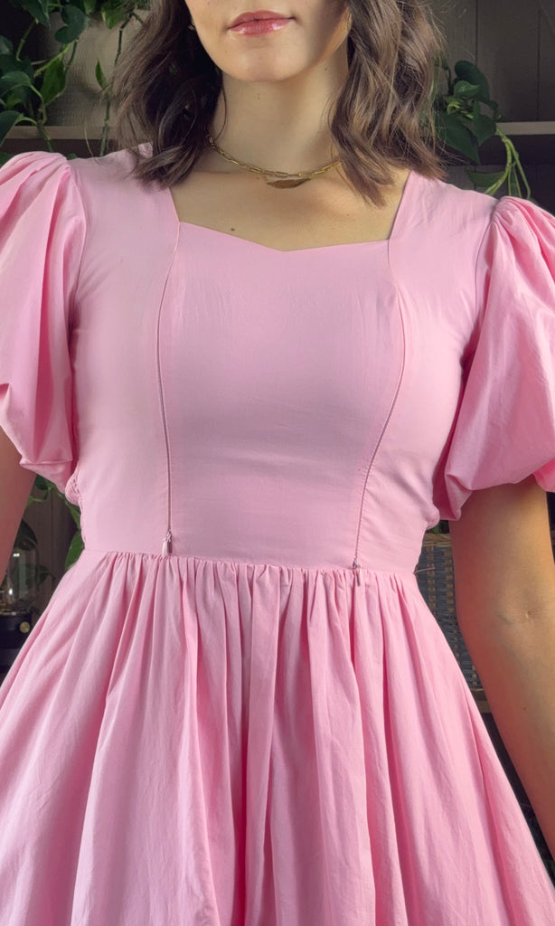 The Ode is spunky and fun. We love the puffy sleeves and skirt. The back has a stretchy ruched panel for comfort as your body fluctuates, so the party never has to stop. This natural fiber dress is made of cotton modal, which is softer and less wrinkly than 100% cotton, but just as friendly to your skin and the environment.