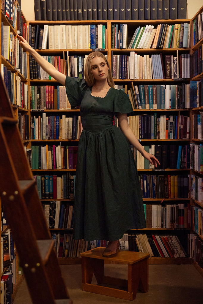 This was my first purchase from Poet Dresses. I've followed and cheered them on for a while and have been wanting to get a dress from them. I finally settled on this one to start out. Dark green is one of my favorite colors.