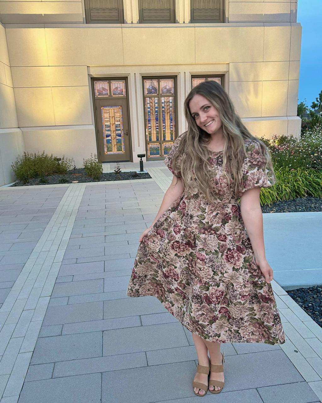 This trendy, vintage-inspired, puff sleeve brown floral dress is perfect for church, dinner dates, cocktail parties, and every gathering in between!